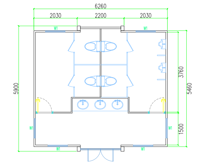 4 τουαλέτες (2 ανδρών, 2 γυναικών)